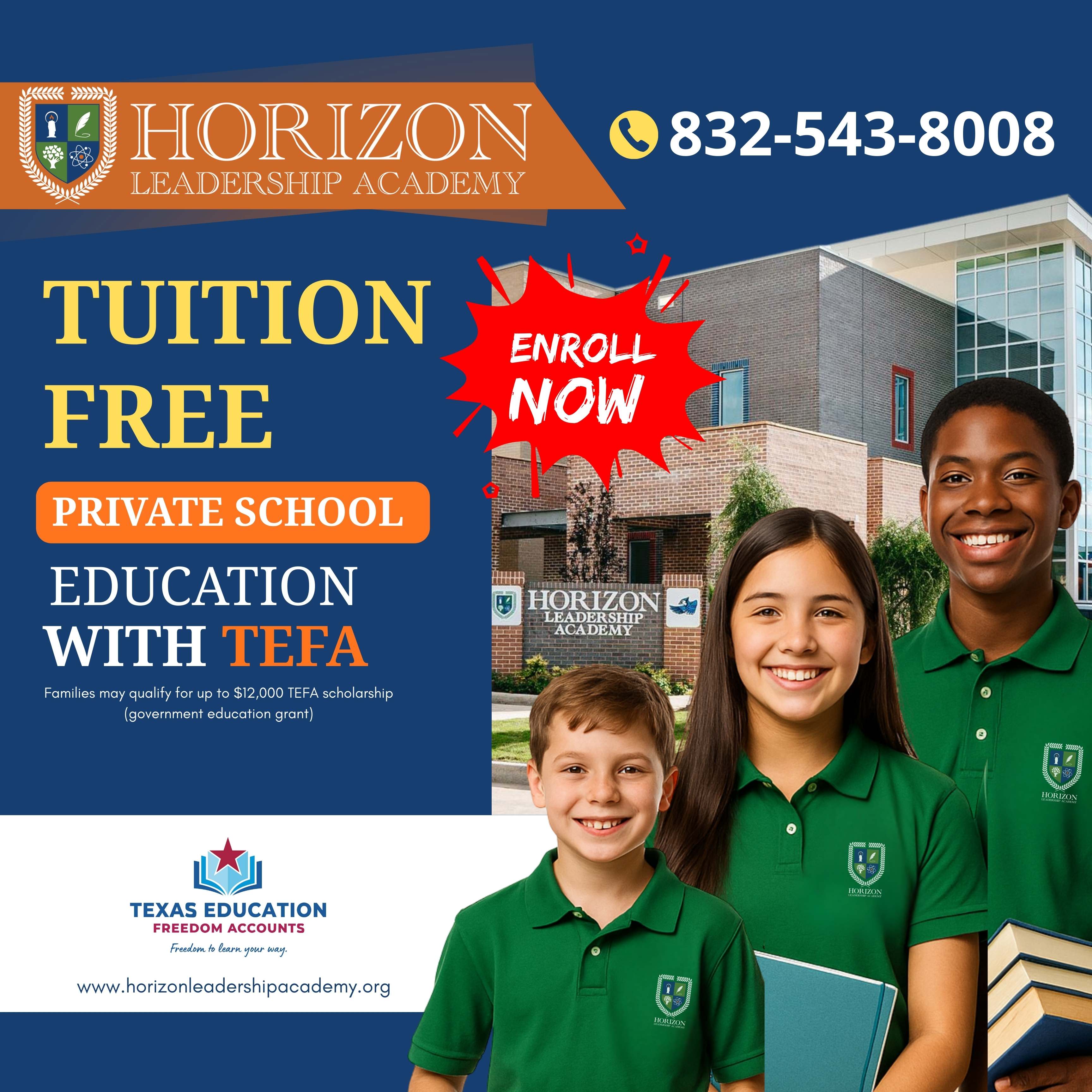 Horizon Leadership Academy helps families benefit from TEFA, the statewide program that offers $10,474 in tuition support for eligible students.