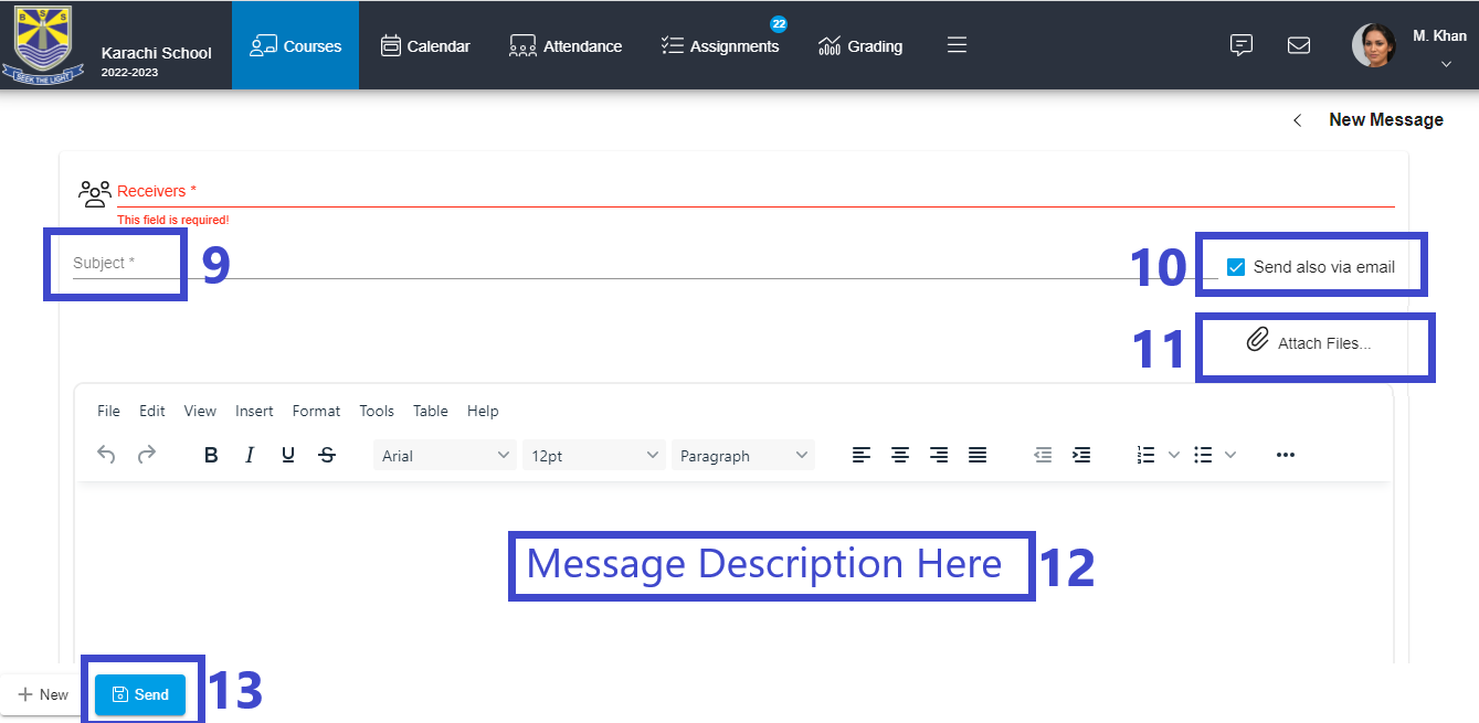 11. Use Attach files if you want to send file.